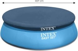 Praktisks INTEX pārklājs virszemes apaļajiem baseiniem ar 457 cm diametru aizsargā ūdeni no lapām, kukaiņiem un netīrumiem. Pateicoties drenāžas atverēm, uz virsmas neuzkrājas ūdens, un pārklājs palīdz uzturēt stabilāku ūdens temperatūru. Tas ir izgatavots no izturīga materiāla, tam ir 30 cm pārkare drošai nostiprināšanai un tas ir saderīgs ar dažādu zīmolu baseiniem ar malās platumu 421 cm.