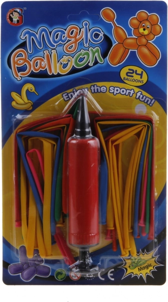 - Ietver 24 balonus košās krāsās un praktisku pumpīti.