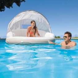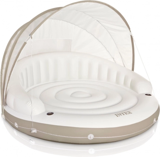 INTEX uzpūšamā sala nodrošina perfektu vietu atpūtai pie ūdens. Noņemamā un regulējamā nojume sniedz patīkamu ēnu, kad saule ir spēcīga, un sauļošanās laikā to var viegli noņemt. Plata virsma un veidotas atzveltnes nodrošina komfortu ilgstošai atpūtai.