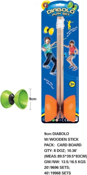 Diabolo ir pieejams četrās dzīvīgās krāsās: zaļā, zilā, dzeltenā un oranžā, kas piesaista un motivē ikvienu žonglieri.
