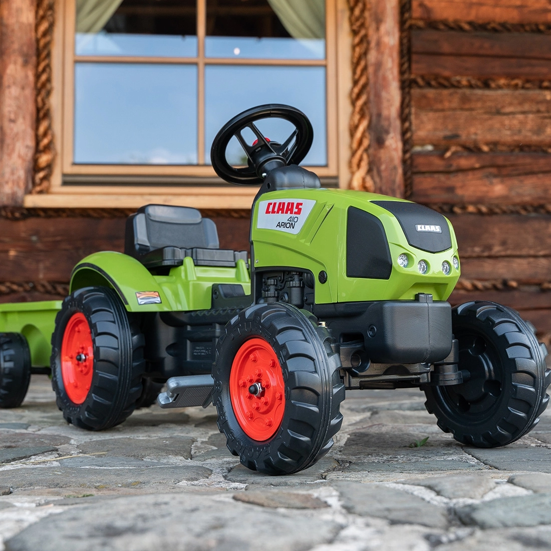 Pateicoties kvalitatīvajiem plastmasas riteņiem un robustajai konstrukcijai, traktors ir stabils un drošs katrā braucienā.