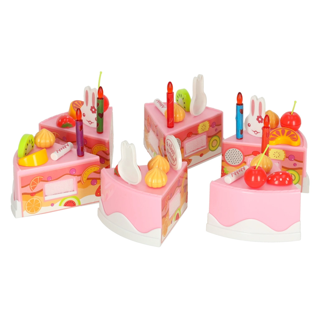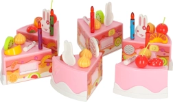 Atklājiet dzimšanas dienas svinību burvību katru dienu. Bērnu rozā kūku no 6 daļām ar uzrakstu “Happy Birthday” var viegli izjaukt un salikt no jauna, pateicoties lipekļiem. Mazie pavāri to izrotās pēc noskaņojuma – ar svecītēm, trušīšiem un košiem augļiem – un pasniegs uz šķīvīšiem.