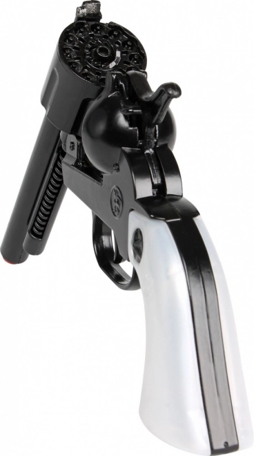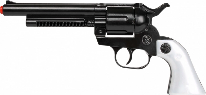 Šis kovboju kapsulveida revolveris piedāvā reālistisku izskatu un izturīgu izpildījumu. Metāla un plastmasas kombinācija padara to vieglu rokā, vienlaikus pietiekami stabilu biežai lietošanai. Garais stobrs un baltais rokturis uzsver klasisku vēsturiska revolvera izskatu.