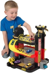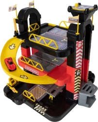 Komplektā ietilpst piecas mašīnītes, kuras var izvietot dažādos līmeņos. Šī rotaļlieta ir ideāli piemērota bērnu no trīs gadu vecuma smalkās motorikas, iztēles un koordinācijas attīstīšanai.
