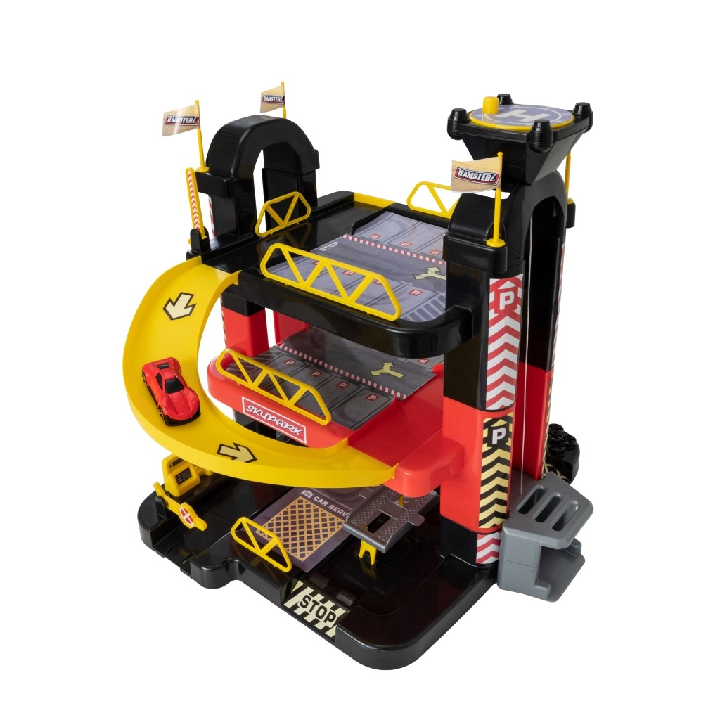 Iekļauj funkcionējošu liftu, rampas un stāvvietas, kas veicina radošu spēli un iesaista bērnus rotaļu procesā.