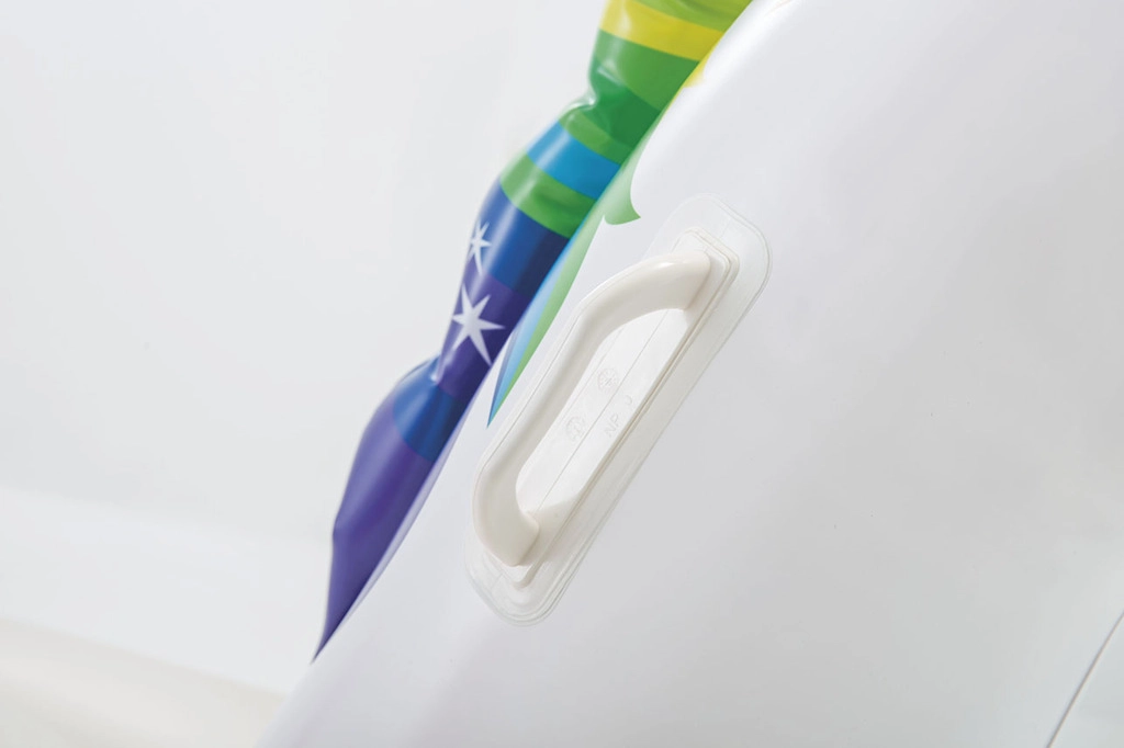 Šis uzpūšamais matracis skaista vienradža formā piesaista katra pludmales apmeklētāja uzmanību. Ideāla izvēle tiem, kas vēlas baudīt relaksāciju ūdenī un pludmalē. Uz virsmas ērti var novietoties divi pieaugušie.