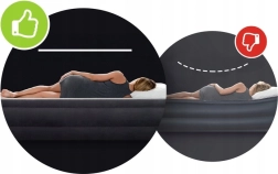 Patentētā Dura‑Beam Fiber Technology ar iekšējo kameru sistēmu atbalsta ergonomisku ķermeņa pozīciju, vienmērīgi sadala svaru un palīdz novērst spiediena punktus un muguras sāpes. Boston vārsts ļauj ātri uzpūst un izpūst, tāpēc matraci viegli sagatavot viesiem vai teltij.