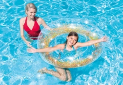 Uzpūšamais peldriņķis INTEX Sparkling Glitter ir lieliska izvēle baseinam, ezeram vai jūrai. Pateicoties caurspīdīgajam materiālam un mirdzumiem iekšpusē, tas uz ūdens virsmas veido dzirkstošu efektu, kas piešķir atpūtai unikālu stilu. Izturīgā konstrukcija no masīva vinila nodrošina ilgu kalpošanas laiku un ērtu lietošanu.