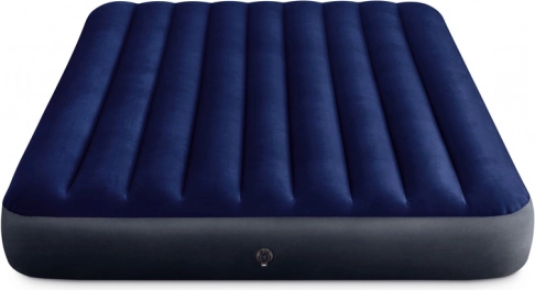 Izbaudiet ērtu atpūtu uz INTEX divguļamā matrača ar patīkamu flokētu (velūra) virsmu, kas ir maiga pieskārienam un palīdz noturēt palagu vietā. Matracis izgatavots no izturīga PVC un ar saviem izmēriem lieliski der viesiem, kemperim vai kempingam.