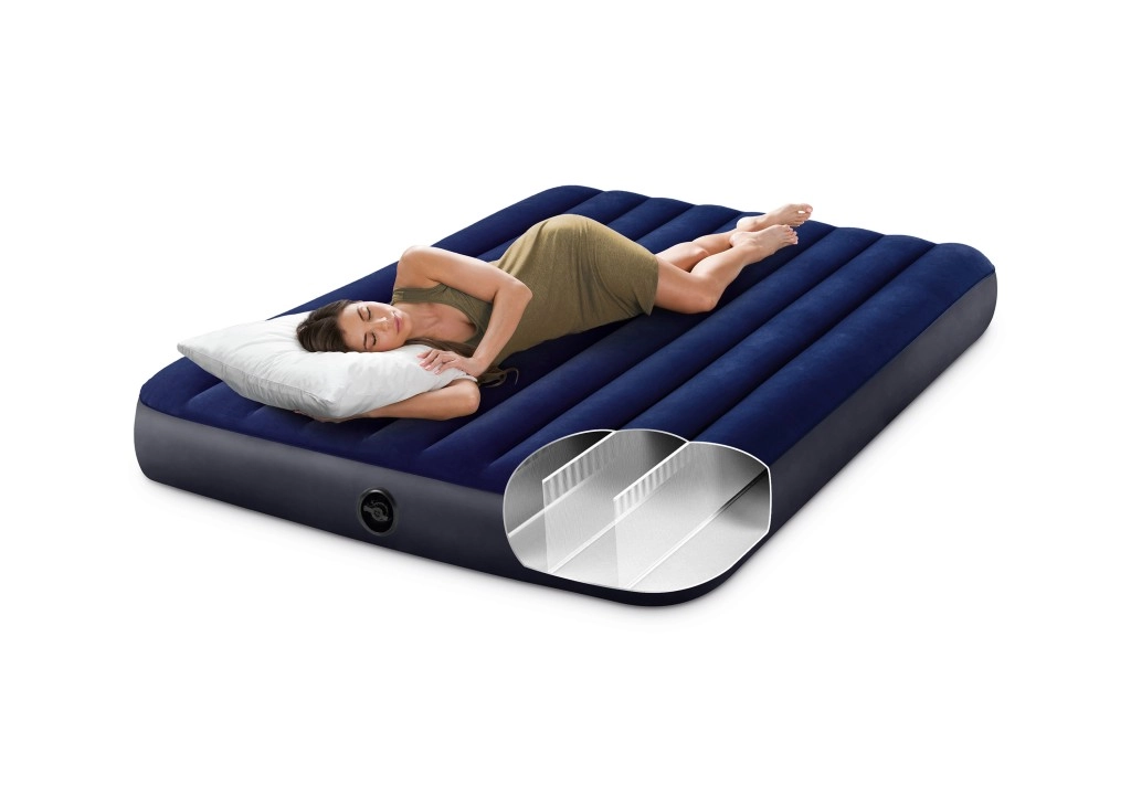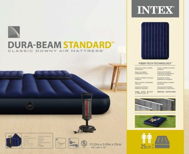 Praktisks INTEX uzpūšamais matracis divām personām ar izmēriem 203 × 152 × 25 cm, mīkstu velūra virsmu un stabilu konstrukciju ērtam miegam mājās un ceļā. Iepakojumā atradīsiet rokas virzuļsūkni, 2 uzpūšamos spilvenus un remonta ielāpu. Pateicoties Boston vārstam, piepūšana un izlaide ir ātra un vienkārša.