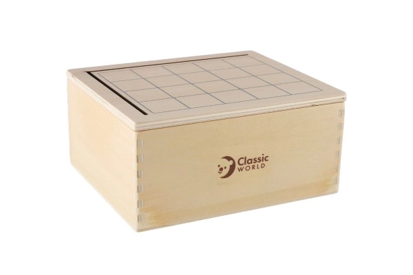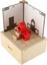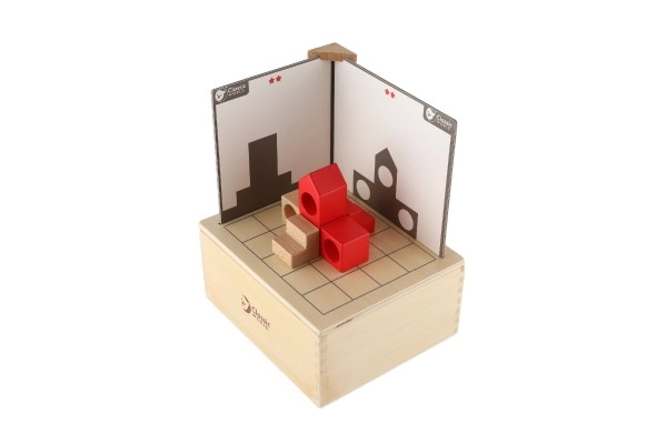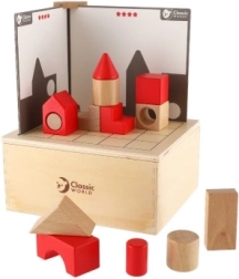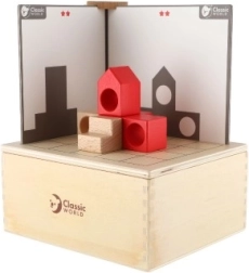 Kopums ir paredzēts bērniem no 3 gadu vecuma, un visas detaļas ir droši ievietotas koka kastītē ar izmēriem 18,5 x 16 x 9 cm. Bērni var mēģināt salikt blokus pēc kartītēm un saskaņot abas puses, tādējādi trenējot loģiku un veiklību.