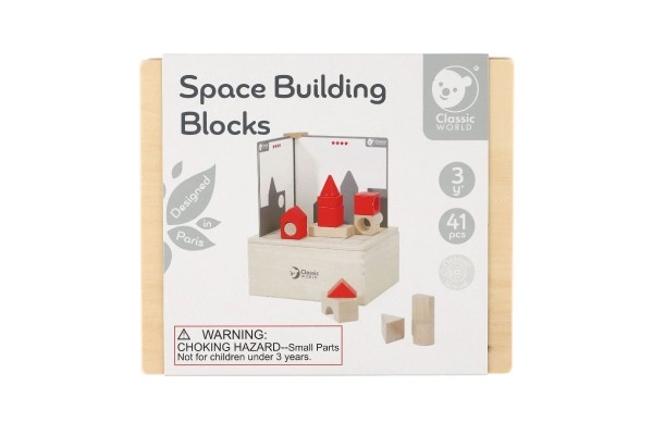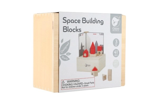 Ar šo skaisto koka konstruktora komplektu bērni var modināt savu iztēli un loģisko domāšanu. Space Building Blocks ietver 41 daudzveidīgu detaļu kopā ar 14 kartītēm, kas radošajām spēlēm piešķir jaunu dimensiju. Katra kartīšu pakāpe atšķiras pēc grūtības, kas ļauj pakāpeniski pilnveidot prasmes.