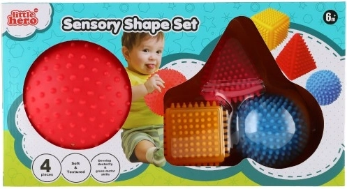 Sensoro ģeometrisko formu komplekts LITTLE HERO patiks ikvienam zinātkāram bērnam. Dažādās virsmas un spilgtās krāsas veicina maņu uztveri, bet radziņu struktūra atvieglo satveršanu pat pašām mazākajām rociņām. Manipulējot ar atsevišķām formām, bērni dabiski trenē roku–acu koordināciju un mācās atpazīt atšķirības starp formām un krāsām.