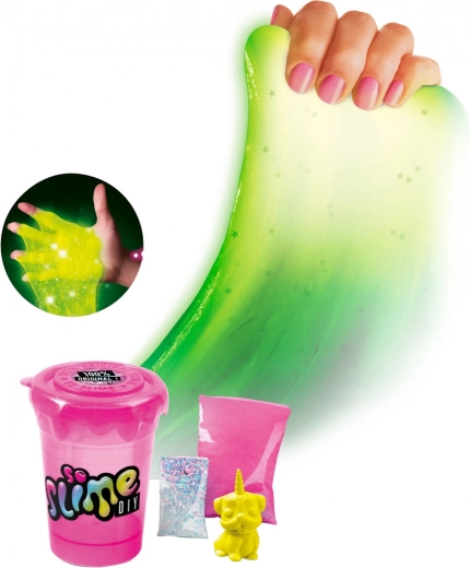 Atklājiet vienkāršu un drošu slaima gatavošanu ar So Slime komplektu. Iepakojumā atradīsiet visu nepieciešamo viena trauciņa slaima izveidei, kas pēc uzlādēšanas ar gaismu maģiski spīd tumsā. Sajaucot pulveri ar ūdeni, spīguļiem un pievienoto figūriņu, dažu minūšu laikā iegūsiet unikālu slaimu.