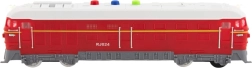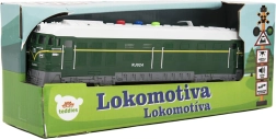 Izklaidējoša plastmasas lokomotīve 23 cm garumā iepriecinās katru mazo mašīnistu. Tā piedāvā gaismas efektus, reālistiskas lokomotīves skaņas un vienmērīgu kustību, pateicoties inerces mehānismam. Baterijas 3× AG13 ir iekļautas komplektā, tāpēc varat uzreiz doties uz sliedēm.