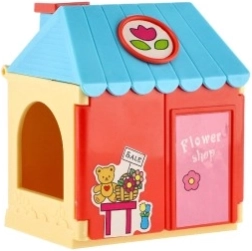 Jautrs namiņš ar ziedu motīviem un kases aparātu māca bērniem saskaņot krāsas, veidot kompozīcijas un parūpēties par klientiem.