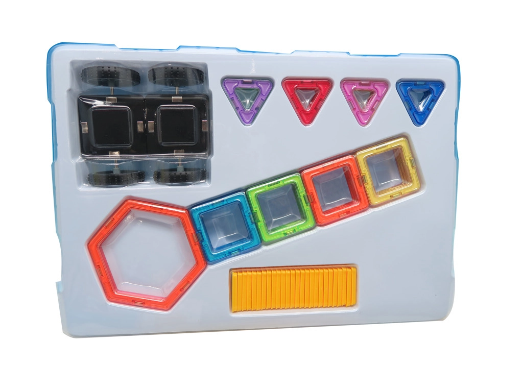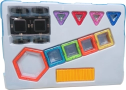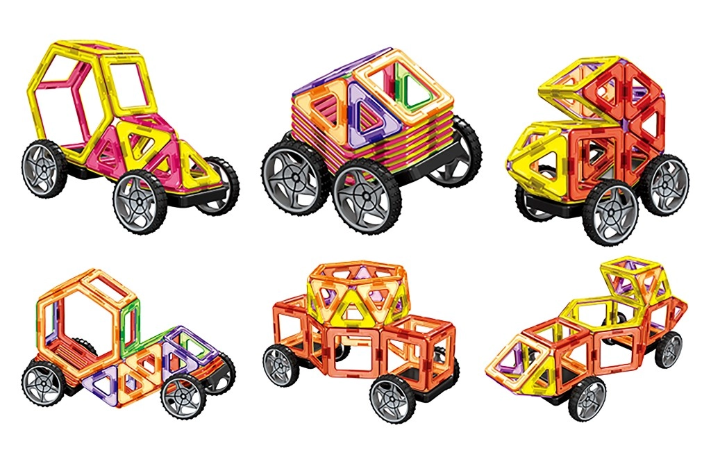 Dažādu modeļu salikšana, pateicoties daudzveidīgām detaļām un magnētiskajiem savienojumiem. Veicina telpisko uztveri un motoriskās prasmes.