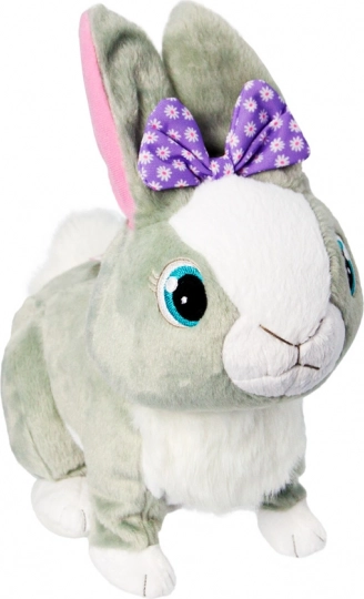 Lielas zilas acis, rozā austiņas un violeta lente piešķir trusītim neatkārtojamu šarmu, kas sajūsminās ikvienu bērnu.