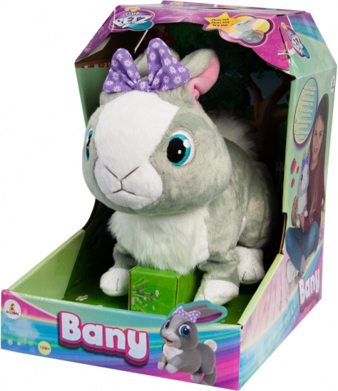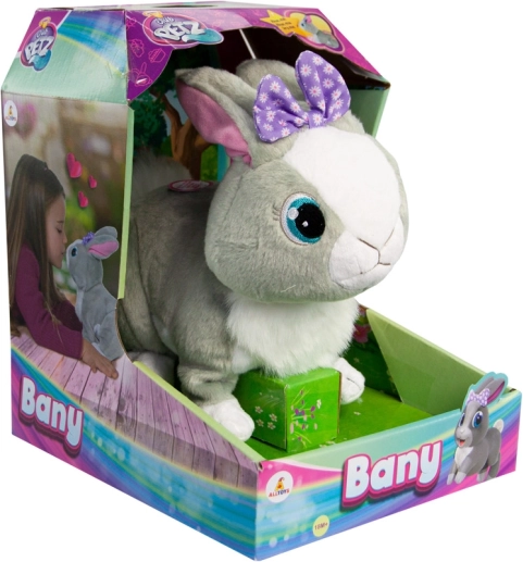 Mīksts plīša izpildījums, maigs pieskāriens un apburošs izskats ar violetu lentu padara BANY par ideālu rotaļu un mīļošanās biedru. Interaktīvais trusītis attīsta bērnu iztēli, emocijas un pirmās komunikācijas prasmes.