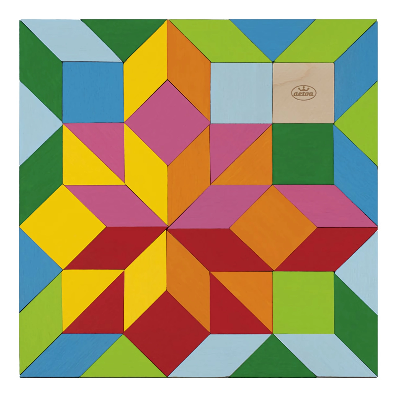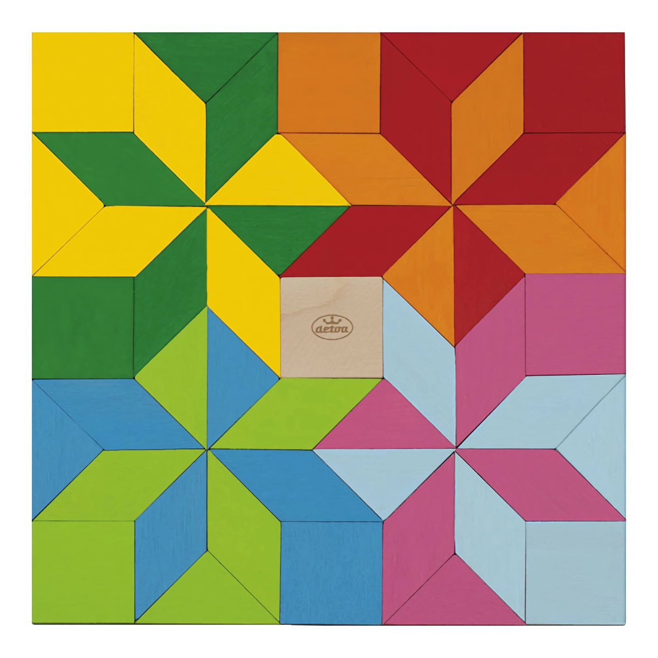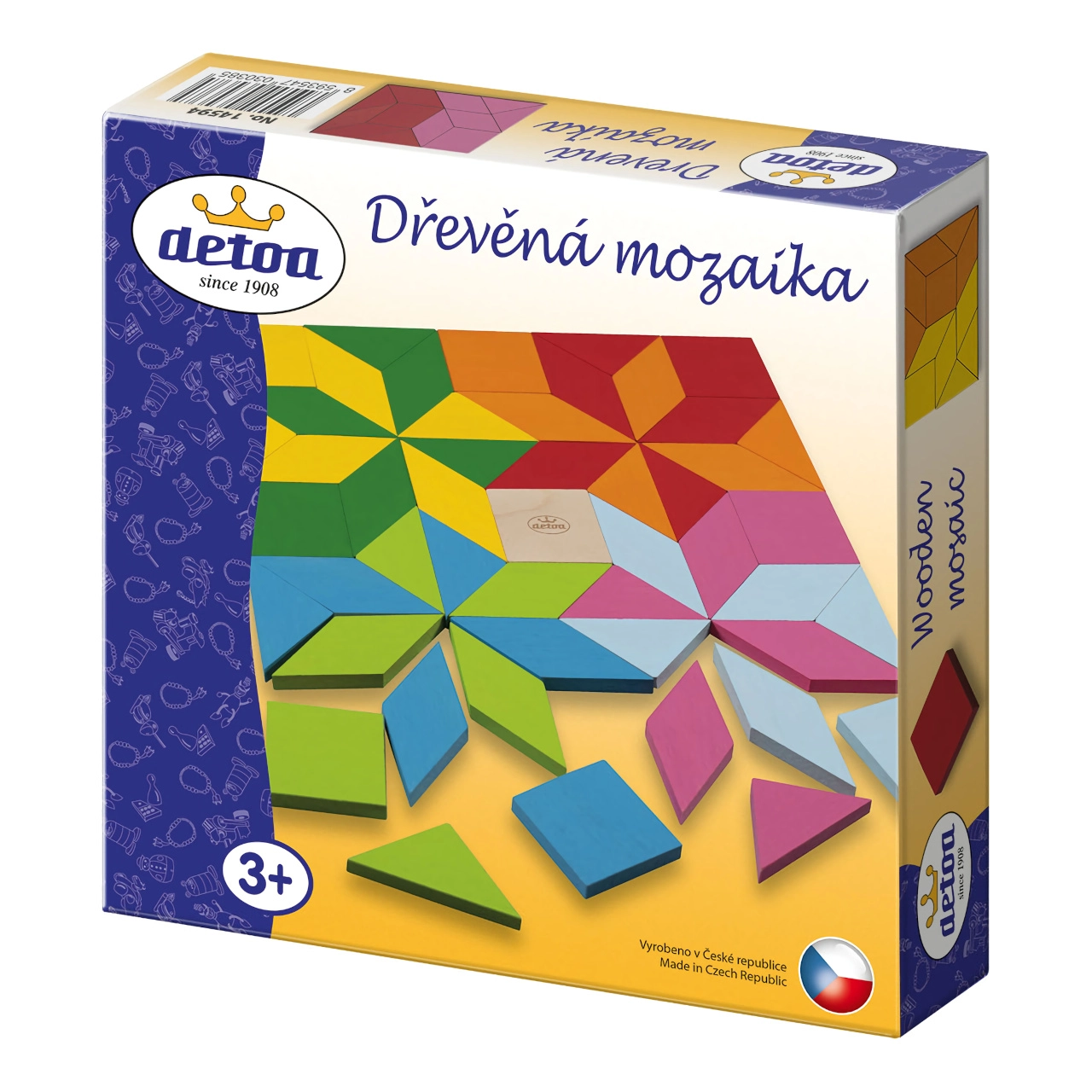 Detoa mozaīka ir klasiska didaktiskā spēle no izturīga koka. Bērni veido bezgalīgi daudz krāsainu rakstu, trenē roku–acs koordināciju un apgūst formas, krāsas un vienkāršas ģeometriskas attiecības. Spēle veicina koncentrēšanos un pacietību, vienlaikus sniedzot radošuma prieku.