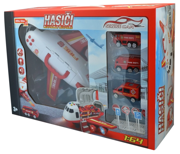 Ugunsdzēsēju lidmašīna ātri pārvēršas par plašu garāžu mašīnītēm. Bērni var mijot gaisa glābšanas akcijas ar braucieniem pa rampu un novietošanu stāvvietā – viss vienā rotaļlietā.