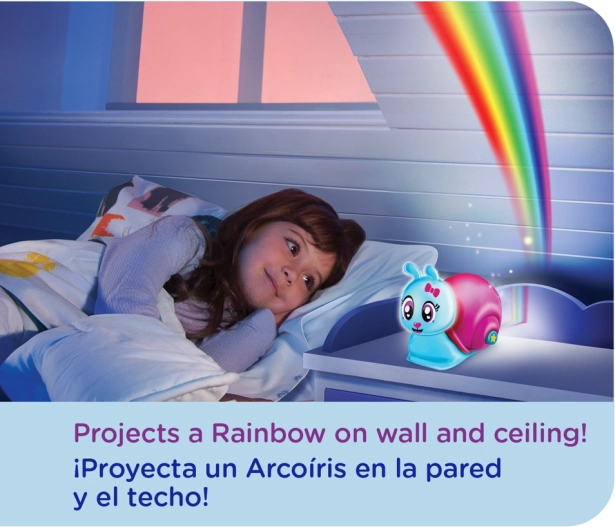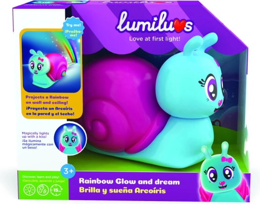 Gaišais un draudzīgais gliemezis Lumiluvs ir ideāls biedrs bērnu iemidināšanai. Vienkārši nospiediet pogu uz tā čaulas, un uz sienām un griestiem iemirdzas varavīksne, pārvēršot parastu istabu par maģisku vietu.