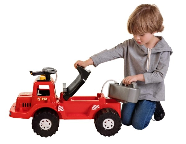 Pateicoties zemajam smaguma centram, platiem riteņiem un ergonomiskajam rokturim, braukšana ir stabila un komfortabla. Atspēriena mašīna veicina lielās motorikas attīstību, koordināciju un bērna pašapziņu. Reālistiskas detaļas, numurs 112 un “FIRE DEPARTMENT” uzraksti pasvītro autentisko izskatu.