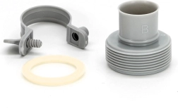 Adapters paredzēts pievienošanai pie baseina sienas caurvada (vienā pusē – diametrs 32 mm) un pievienošanai šļūtenei ar vītņojumu (otrā pusē – diametrs 38 mm).
