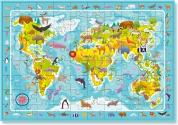 Šī izglītojošā puzle ar dzīvniekiem no visas pasaules piedāvā aizraujošu mācīšanās veidu bērniem no 5 gadu vecuma. Pateicoties spilgtajām krāsām un pārskatāmajām ilustrācijām, bērni viegli iegaumēs atsevišķas sugas un to izplatību. Pēc attēla salikšanas var turpināt ar spēli Atrodi un meklē, kas attīsta orientēšanos un ģeogrāfijas zināšanas.