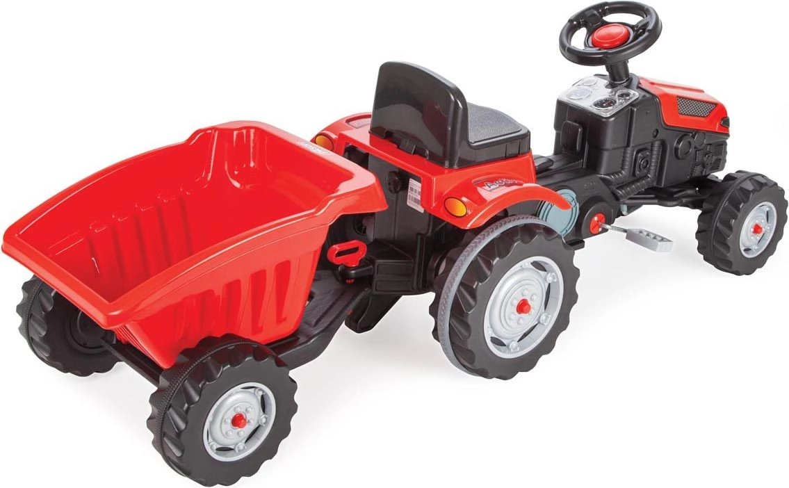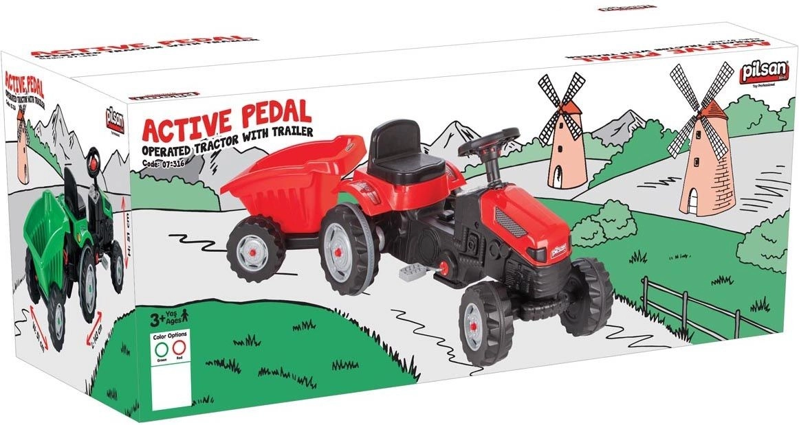 Atklājiet pagalma izklaidi ar šo pedāļu traktoru ar piekabi no zīmola Pilsan. Izturīga konstrukcija, nestspēja līdz 50 kg un reālistiska stūrēšana ar stūri nodrošina bērniem no 3 gadu vecuma ilgas aktīvas spēles stundas. Pateicoties piekabei, var vest rotaļlietas vai smiltis un attīstīt sīko motoriku, iztēli un kustību prasmes.