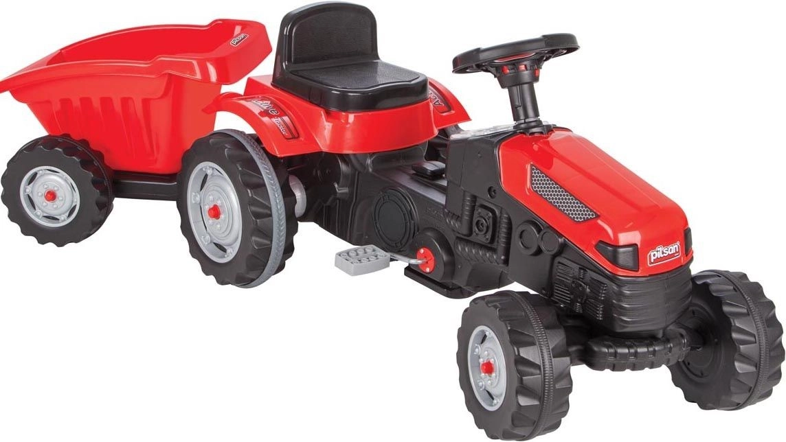 Pilsan pedāļu traktors pievilcīgā sarkanā krāsā bērniem sniedz autentisku braukšanas pieredzi. Stabilā konstrukcija, ērta sēdpozīcija un pievienojamā piekabe padara šo rotaļlietu par lielisku biedru dārzam, rotaļu laukumam un pagalmam. Pateicoties vienkāršai stūrēšanai ar stūri, bērni izbaudīs reālistisku “vadīšanu” un daudz drošas izklaides.