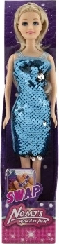 Šī elegantā lelle ir gatava ballītei un modes skatei. Kleita ar divpusējiem fliteriem sniedz tūlītēju izklaidi – ar vienkāršu rokas pārbraucienu mainiet krāsu efektu un izveidojiet jaunu stilu dažu sekunžu laikā. Stingrais plastmasas korpuss ļauj stabili nostāties un viegli pārģērbt.