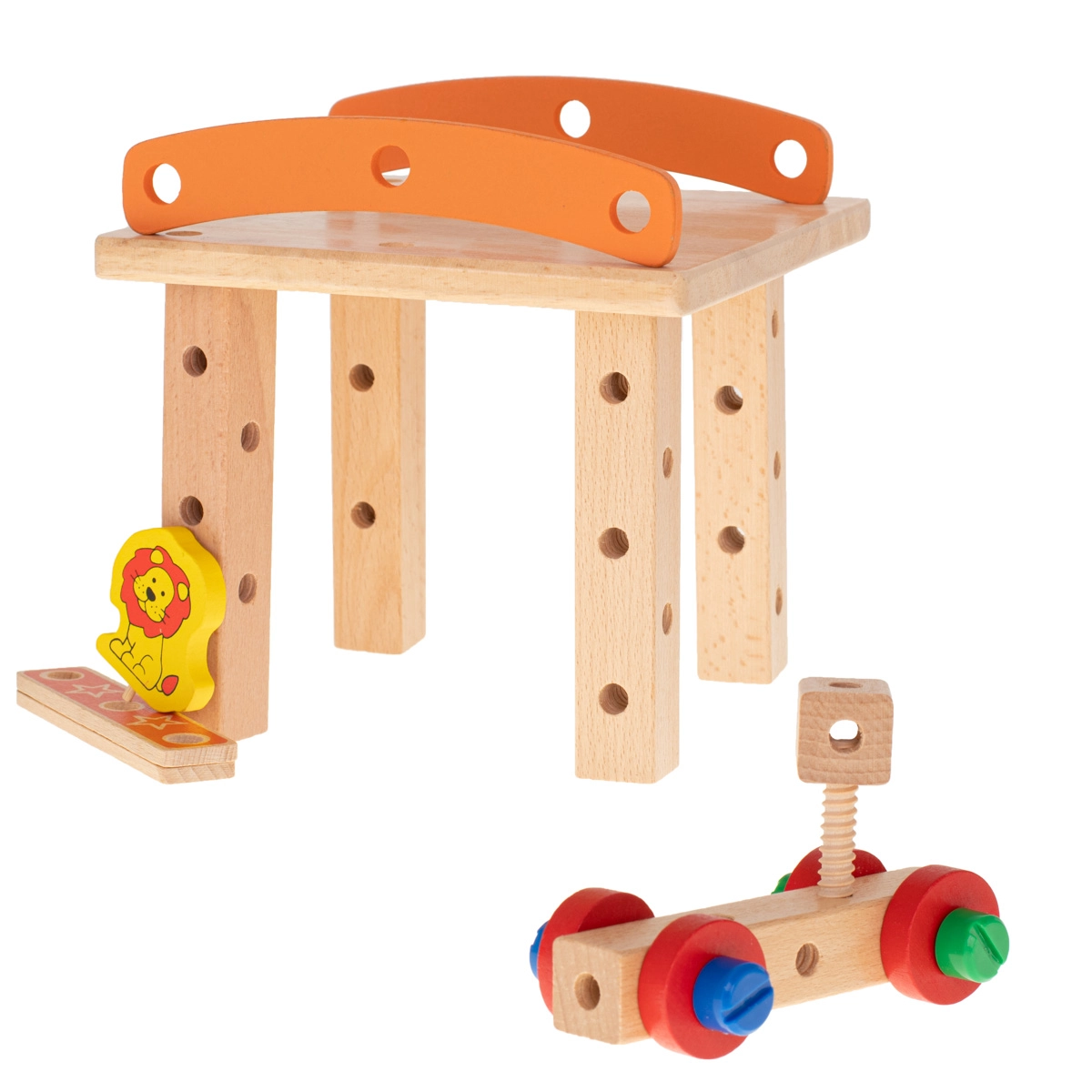 Koka celtniecības komplekts – darbnīcas krēsliņš, 49 detaļas