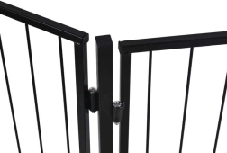 Uzstādīšana ir ātra un uzticama, pateicoties montāžai pie sienas (enkurošanas materiāls iekļauts komplektā). Vārti ir savstarpēji saderīgi – iespējams paplašināt zonu, apvienojot divus komplektus un izveidojot plašāku aizsargbarjeru. Izturīgs melns dizains iederas gan modernā, gan klasiskā interjerā.