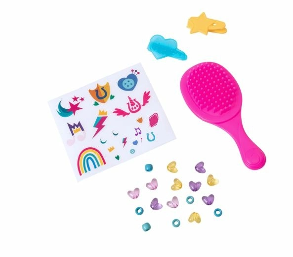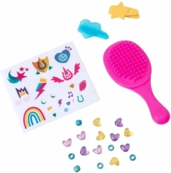 Iepakojumā ietilpst plašs aksesuāru klāsts, piemēram, ķemme, sprādzes un krellītes, kas nodrošina bezgalīgas frizūru un dekorēšanas iespējas.