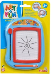 Bērnu magnētiskā zīmēšanas tāfele Art & Fun ir lieliska rotaļlieta bērniem, kuriem patīk zīmēt un atklāt jaunas radošās iespējas. Tāfele ir izstrādāta košā zilā-sarkanā salikumā un aprīkota ar magnētisko pildspalvu, kuru var viegli piestiprināt un vienmēr turēt pa rokai.