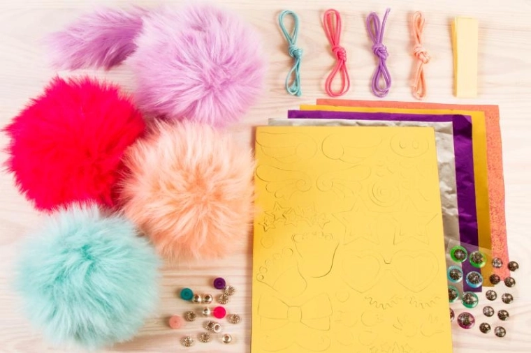 Atklājiet DIY veidošanas prieku un izstrādājiet piekariņus tieši pēc savas gaumes. Komplektā apvienotas pufīgas bumbiņas, krāsainas folijas un krelles, ar kurām radīsiet rotaīgas un pūkainas rotas atslēgām, mugursomai vai penālim. Vienkāršas darbības un droši materiāli nodrošina patīkamu, bezrūpīgu darināšanu.