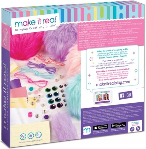 Iepakojumā atradīsiet visu nepieciešamo – no 4 pufīgām bumbiņām un pūkaina astītes līdz vaskotām auklām un divpusējai līmlentei. Atliek tikai sekot pievienotajām instrukcijām, un jau drīz taps jūsu pašu modes aksesuāri.