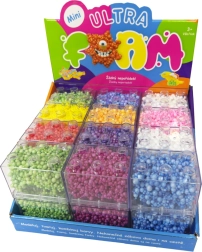 Katra kastīte satur dažādu krāsu putu bumbiņas, ideāli piemērotas veidošanai un izklaidei.