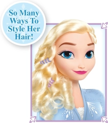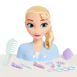 Stilizējamā Elzas galva precīzi atveido iemīļoto varoni ar spilgtām zilām acīm un gariem blondiem matiem, kurus ir viegli ķemmēt, viļņot un rotāt. Pateicoties bagātīgajam piederumu komplektam, bērni var veidot gan vienkāršus, gan svinīgus frizūru risinājumus un baudīt stundām ilgu radošu izklaidi.