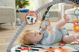 Spogulītis, grabuļi, BPA nesaturoša graužamrota un teksturēti elementi veicina satvērienu, roku–acu koordināciju un atklāšanu. Augsts kontrasts palīdz agrīnai redzes attīstībai.
