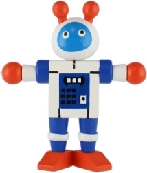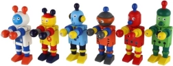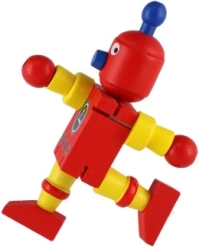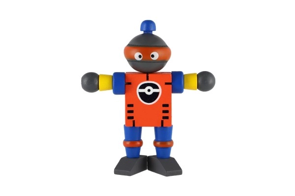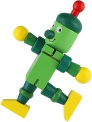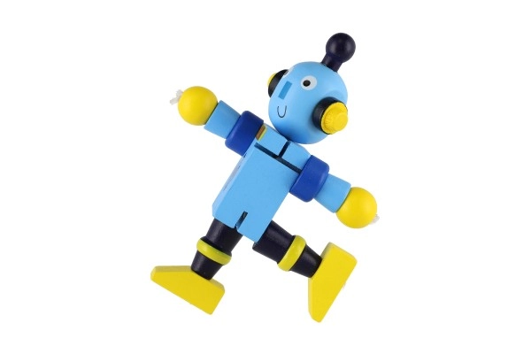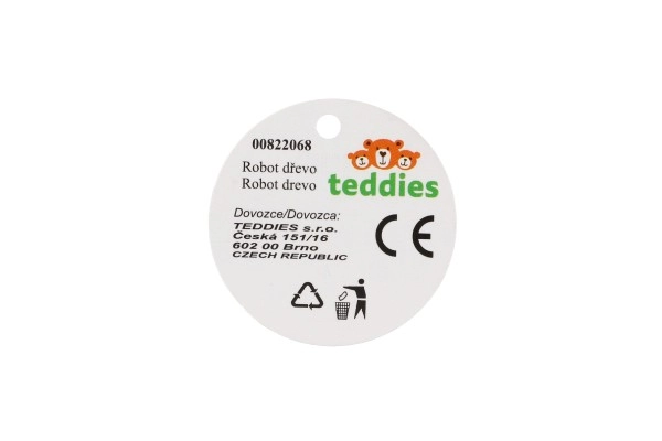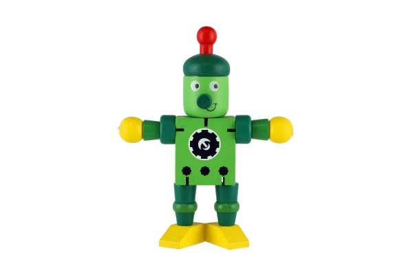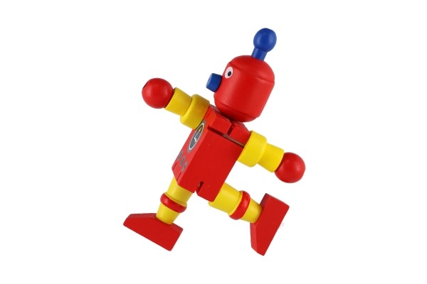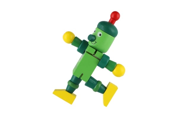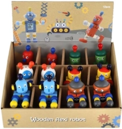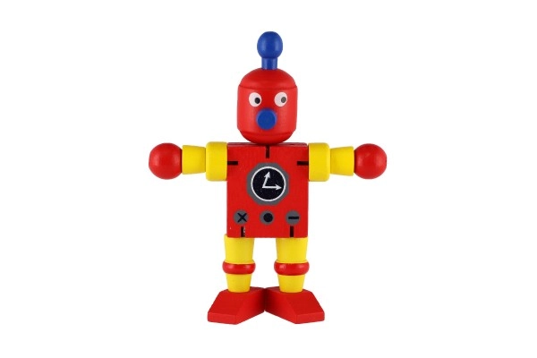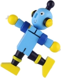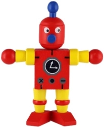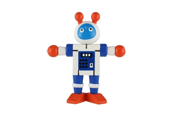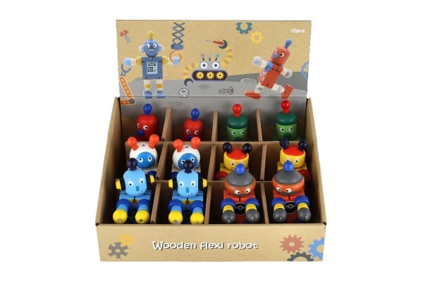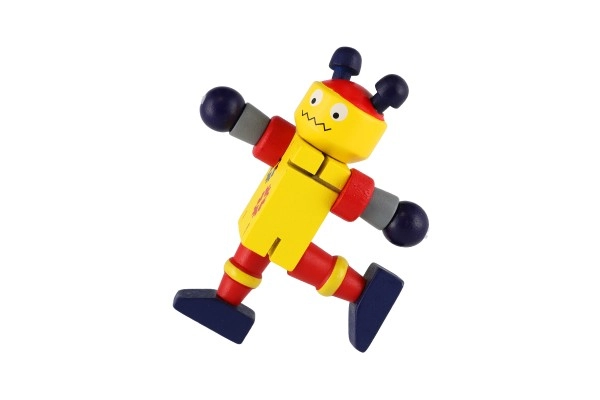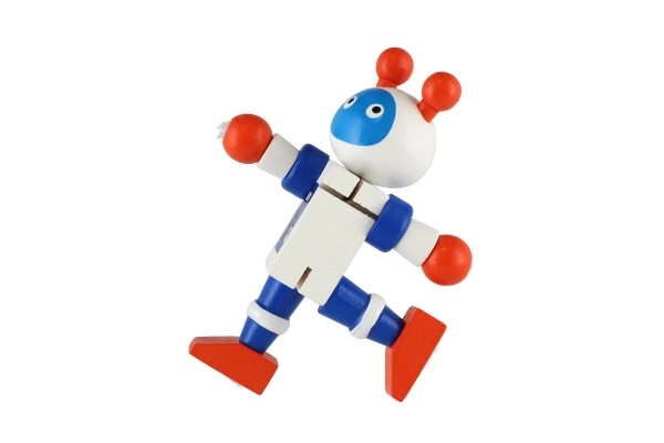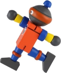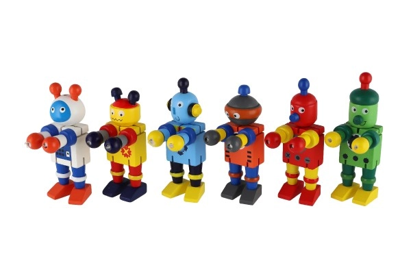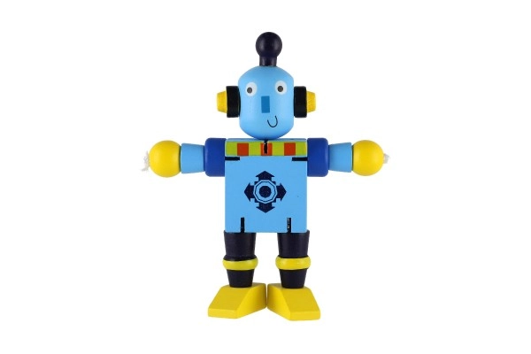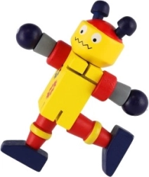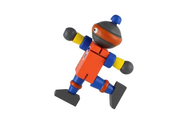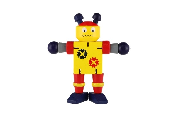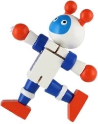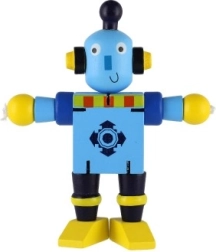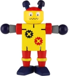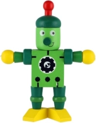 Mīlīgs koka robots 12 cm izmērā iepriecinās katru mazo atklājēju. Pateicoties elastīgajām gumijām tam ir kustīgas ekstremitātes un galva, tāpēc bērni to viegli var apsēdināt, nostādīt vai dažādi iekārtot. Rotaļlieta attīsta sīko motoriku, radošumu un iztēli. Piemērots no 18 mēnešu vecuma.