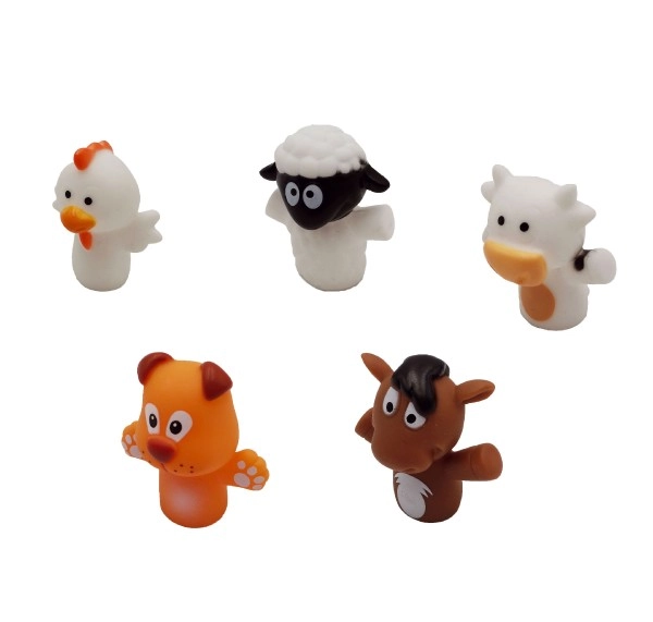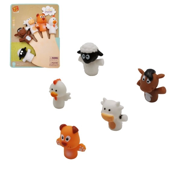 Komplektā ir pieci iecienīti dzīvnieki (piemēram, govs, zirgs, suns, aita, cālītis) košās krāsās, kas piesaista uzmanību un motivē aktīvām rotaļām. Pirkstu lelles ir lieliskas runas attīstībai, radošumam un sociālo prasmju pilnveidei bērniem no 3 gadu vecuma.