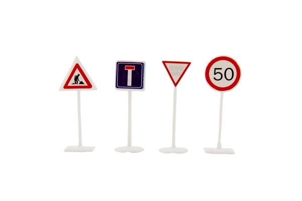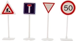 Iepakojumā ir daudzveidīgs zīmju klāsts – sākot no Stop, galvenā un mazsvarīgā ceļa, aizliegumiem un rīkojumiem, līdz pat brīdinājuma trīsstūriem un informācijas simboliem. Pateicoties izturīgai plastmasai, tās ir piemērotas ikdienas rotaļām un viegli kopjamas.