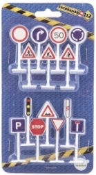 Izklaidējošs un vienlaikus izglītojošs ceļa zīmju komplekts māca bērniem ceļu satiksmes noteikumu pamatus rotaļas veidā. Komplektā ir 14 plastmasas zīmes aptuveni 5–5,5 cm augstumā uz statīva, ideāli piemērotas auto trasēm, rotaļu paklājiem un bērnudārzam. Attīsta loģisko domāšanu, uzmanību un drošu uzvedību uz ceļa. Piemērots bērniem no 3 gadiem.