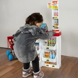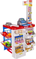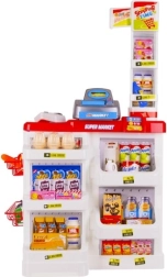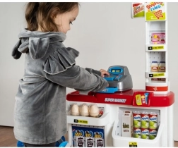 Bērnu supermārkets ir ideāls mazajiem pārdevējiem un pircējiem. Komplektā ir funkcionāls kases aparāts ar izvelkamu atvilktni, svītrkodu skeneris ar skaņu, veikala svari, plaukti ar precēm un iepirkumu ratiņi. Pateicoties bagātīgajam aprīkojumam, bērni trenē skaitīšanu, komunikāciju un patstāvību.