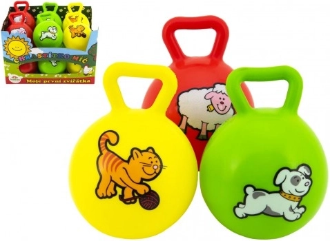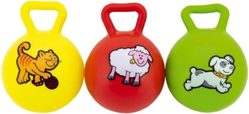Kaķis, sunītis vai aitiņa uz krāsainām bumbiņām piesaista uzmanību un attīsta vizuālo uztveri.