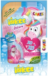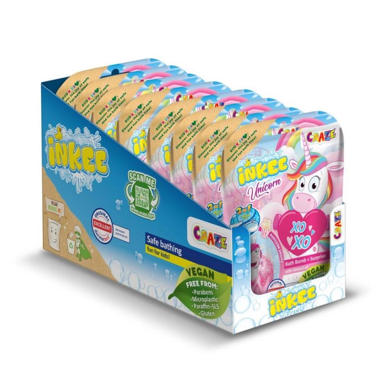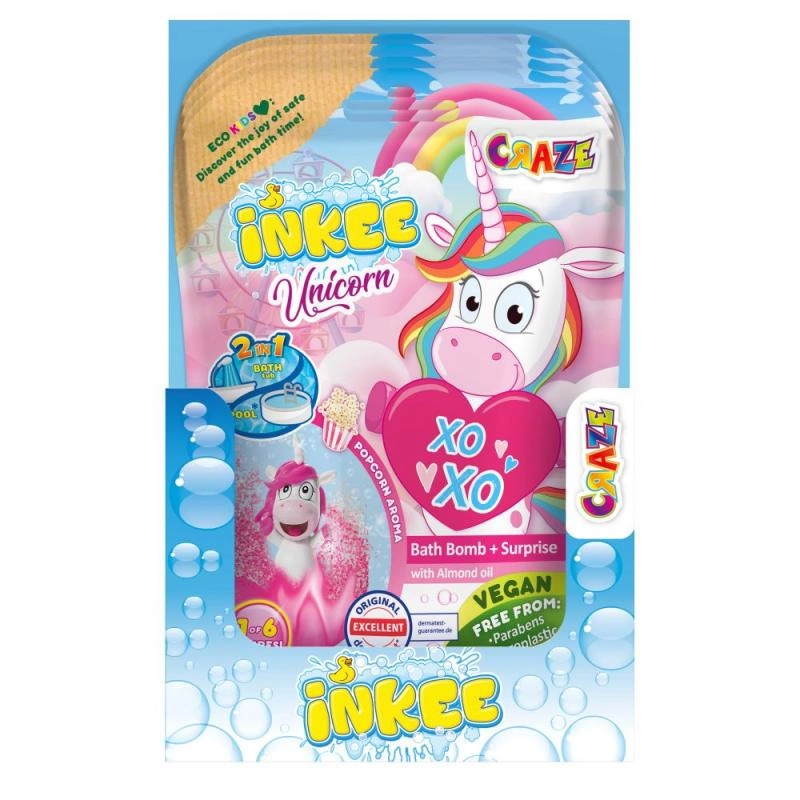 Pārvērtiet vannu priecīgā rotaļā. INKEE šņācošā bumba iekrāso ūdeni, patīkami smaržo pēc salda popkorna un pēc izšķīšanas pārsteidz ar mazu vienradža figūriņu. Ideāli kā neliela dāvana, balva vai jautrs papildinājums bērna vannas rutīnai.