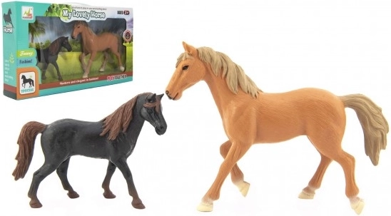 Šis divu figūriņu komplekts – zirgs un kumeļš – sajūsminās visus mazos dzīvnieku mīļotājus. Figūriņas ir izgatavotas no kvalitatīvas un izturīgas plastmasas, tāpēc tās iztur ikdienas rotaļas un vienlaikus saglabā savu reālistisko izskatu.
