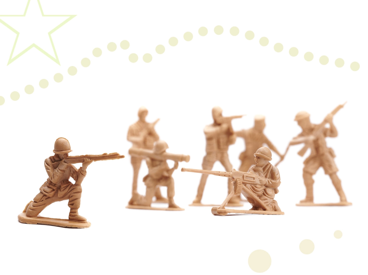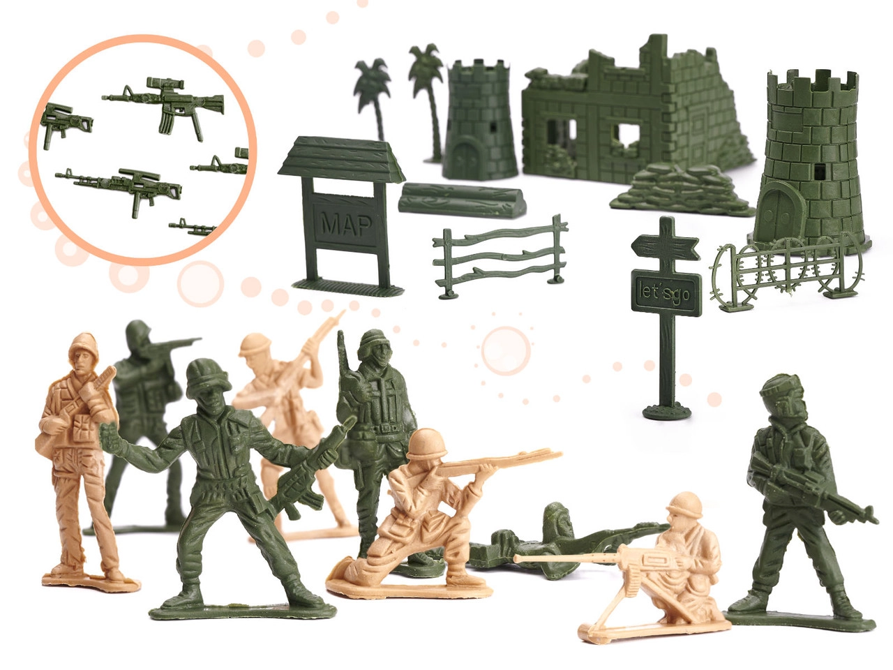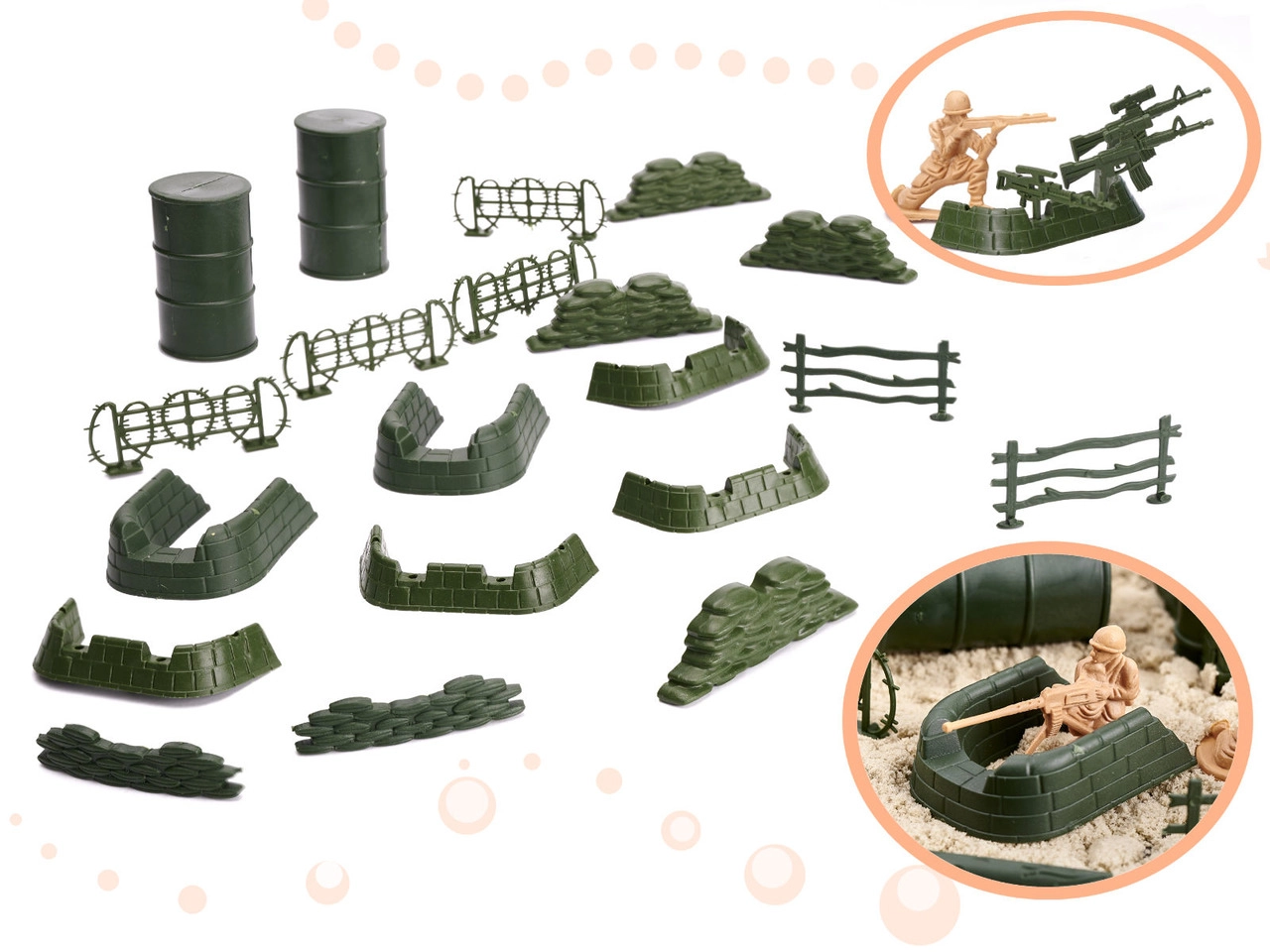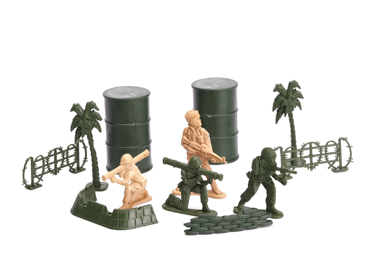 Komplekts ar apmēram 60 kareivīšiem un daudziem piederumiem ļauj izveidot reālistisku kaujas lauku un spēlēt bez ierobežojumiem.